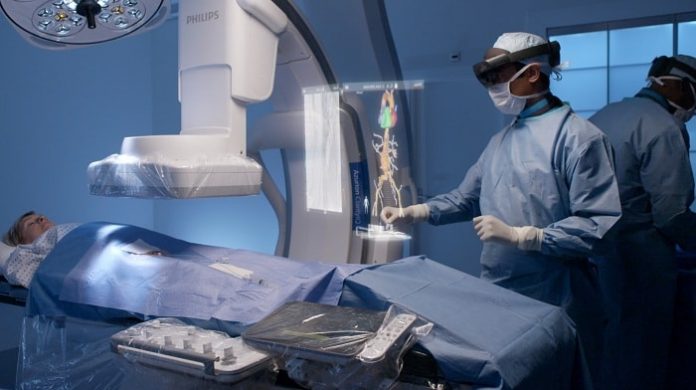 Royal Philips, a global leader in health technology unveiled a unique mixed reality concept developed together with Microsoft Corp. for the operating room of the future. Based on the state-of-the-art technologies of Philips’ industry-leading Azurion image-guided therapy platform and Microsoft’s HoloLens 2 holographic computing platform, the companies will showcase novel augmented reality applications for image-guided minimally invasive therapies.