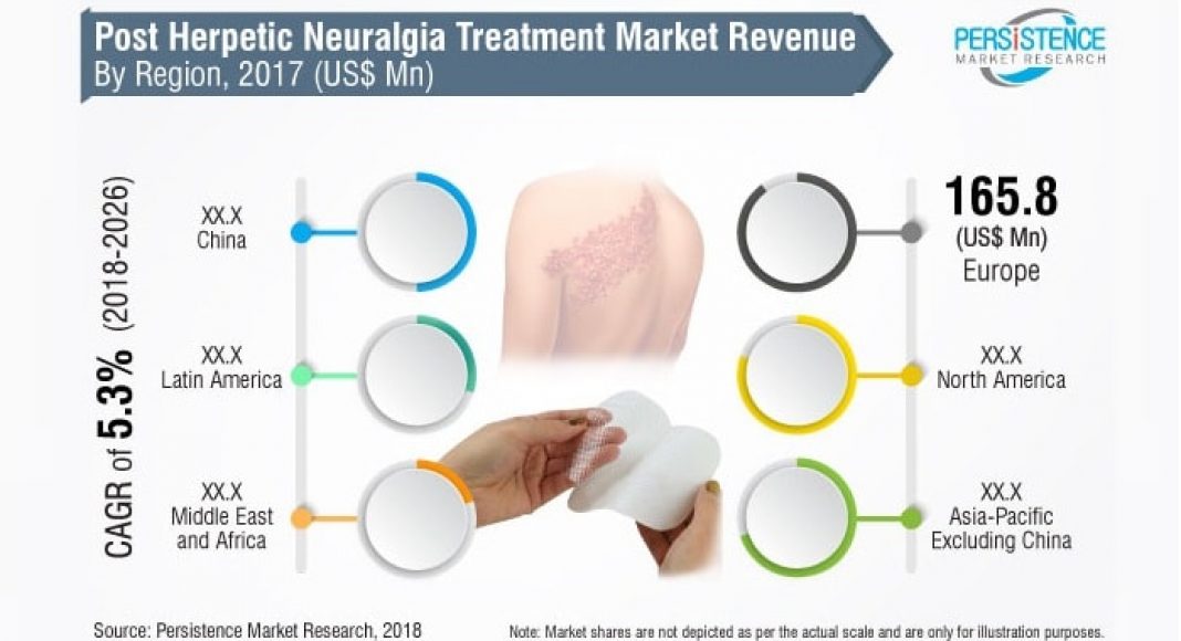 Growing cases of post herpetic neuralgia treatment are increasing the number of referrals to pain management clinics resulting in growth of market. According to a latest research by Persistence Market Research (PMR), the global post herpetic neuralgia treatment market is anticipated to account for over US$ 908.4 Mn, in terms of value, by 2026 end. The report on post herpetic neuralgia treatment further projects significant growth potential of post herpetic neuralgia treatment market with CAGR pegged at 5.3% through 2026.